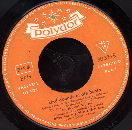 Orchester: WERNER MÜLLER, KURT EDELHAGEN, PAUL DURAND, ADALBERT LUCZKOWSKI, HUBERT DEURINGER, Arrangements: HEINZ GIETZ,