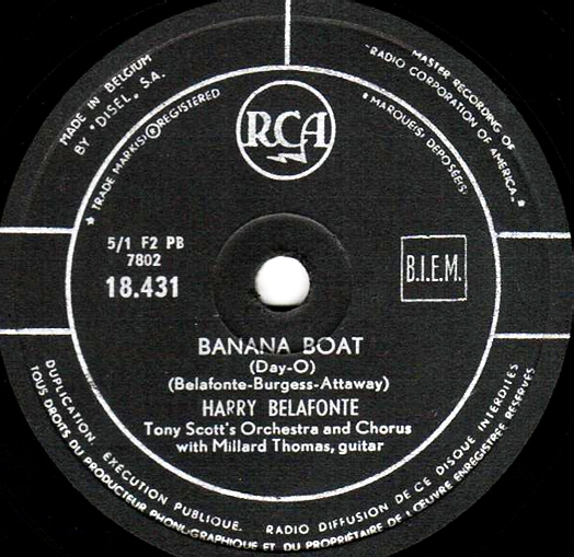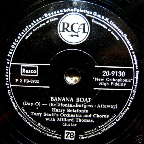 ?? 57....47-9130....Harry Belafonte - Tony Scott's Orchestra and Chorus with Millard Thomas, Guitar..Banana Boat (Day-O)/Harry Belafonte with Millard Thomas, Guitar..Will His Love Be Like His Rum? (RCA VICTOR 6771/6786)