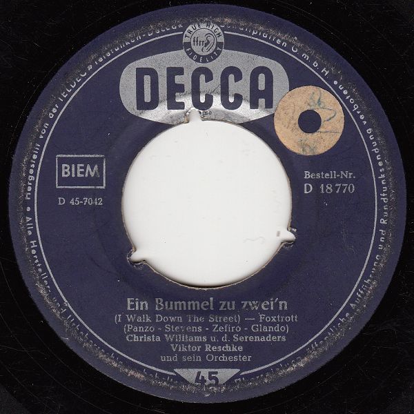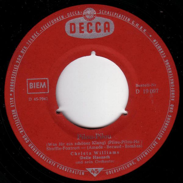 Zuerst "Pilou-Pilou-HĂ©" von Gilbert BĂšcaud auf deutsch. Die BĂšcaud-Fassung kenne ich leider nicht aber die Interpretation von Dalida in französisch fĂ€llt gegenĂŒber Christa Williams doch sehr ab. Christa Williams macht die deutsche Version sehr spritzig und rhythmisch, so dass sie, zumindest musikalisch, sehr gut ins Forum paĂt. Die deutsche Version "Niemals so verliebt" des Teenie-Rockers "Comin' Down With Love" von Mel Gadson ist dem Original zumindest ebenbĂŒrtig.