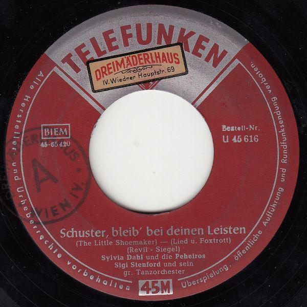 U 45616 "Heut' Liegt Was In Der Luft"/"Schuster Bleib' Bei Deinen Leisten (The Little Shoemaker)"-1954 & Die PEHEIROS & SIGI STENFORD und sein großes Tanzorchester,