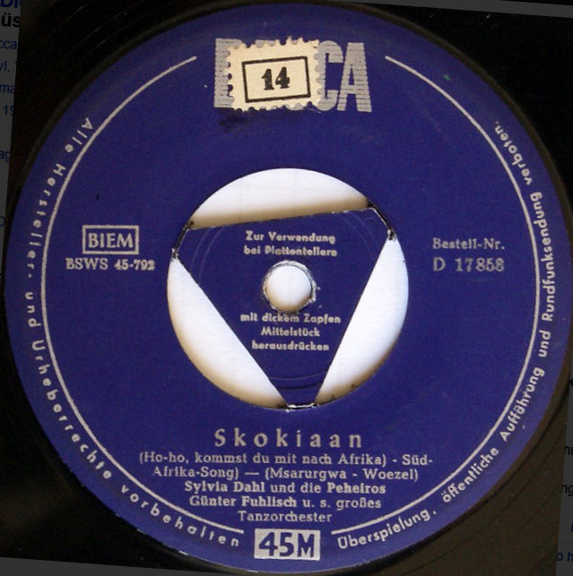D 17858 "Skokiaan (Ho-Ho, Kommst Du Mit Nach Afrika)"/"Du Kannst Singen, Du Kannst Küssen, Du Kannst Tanzen"-11/1954 & Die PEHEIROS & GÜNTER FUHLISCH u.s. großes Tanzorchester,
