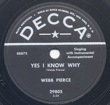 12 55....9-29805....WEBB PIERCE..'Cause I Love You/Yes, I Know Why