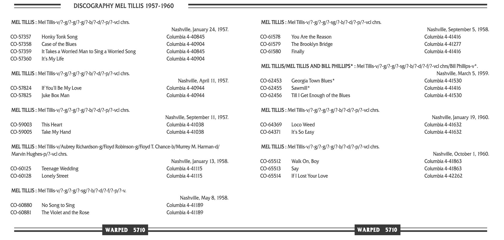 11 59....4-41530....MEL TILLIS and BILL PHILLIPS..Till I Get Enough To These Blues (ZSP 47022)/Georgia Town Blues (ZSP 47019)