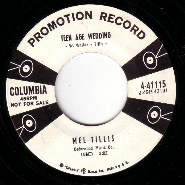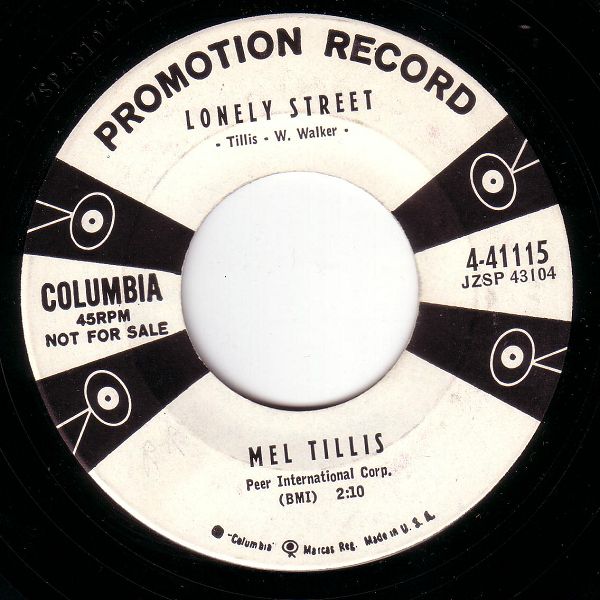 02 58....4-41115....MEL TILLIS..Lonely Street (JZSP 43104)/Teen Age Wedding (JZSP 43101)