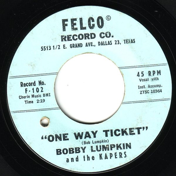 05 59....F - 1 0 2....BOBBY LUMPKIN (irrtümlich !!!) and the KAPERS..One Way Ticket (ZTSC 10364)/Your Conscience (ZTSC 10365)