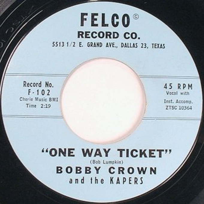 05 59....F - 1 0 2....BOBBY CROWN and the KAPERS..One Way Ticket (ZTSC 10364)/Your Conscience (ZTSC 10365)