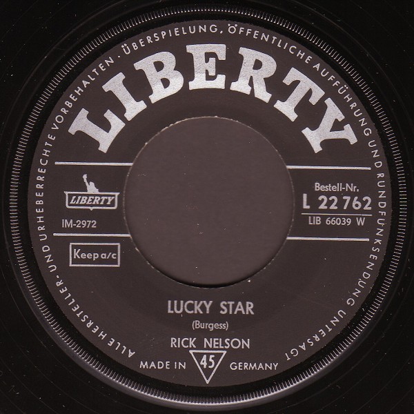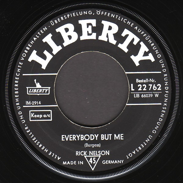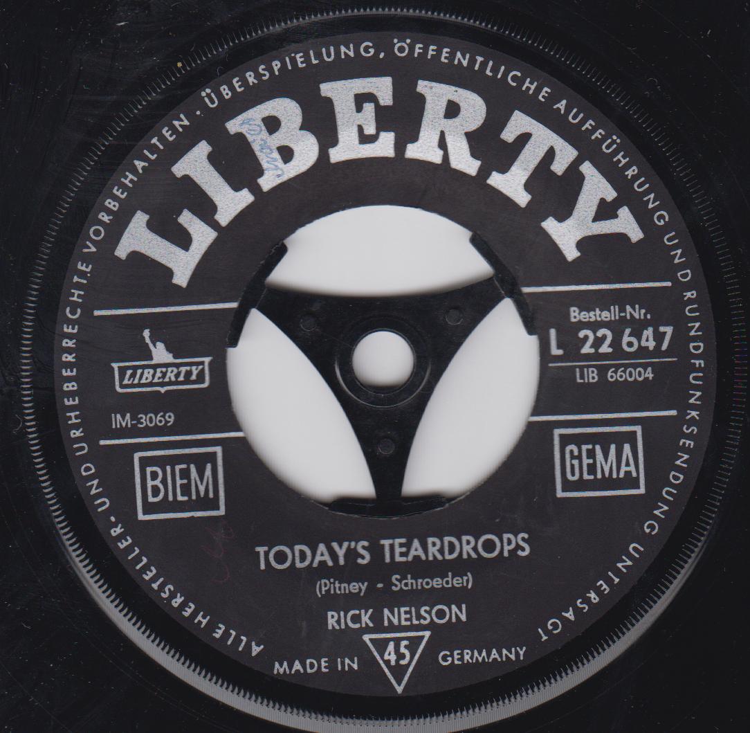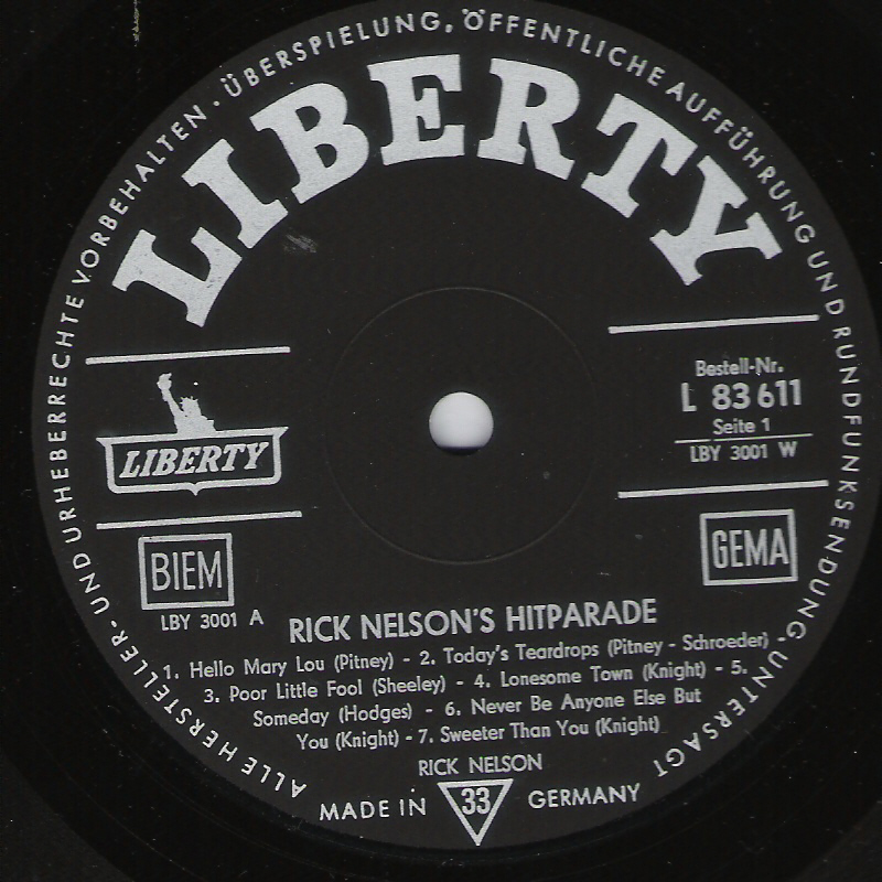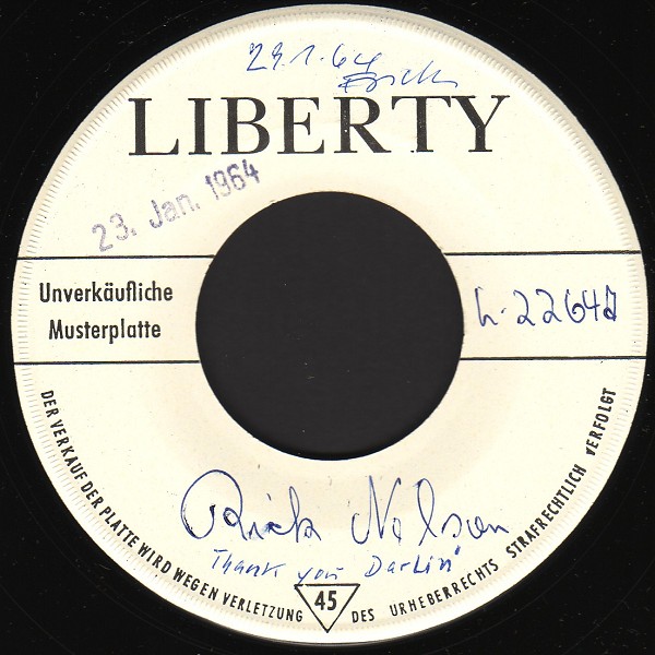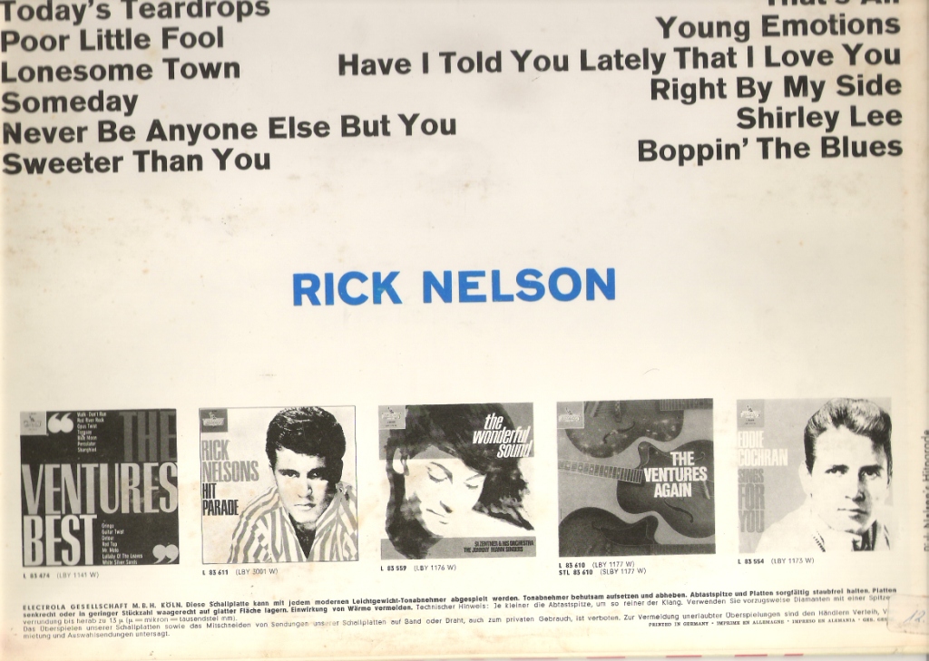 nach London gibt es von Ricky Nelson 2 Single (stelle ich morgen vor) und eine LP auf deutscher Liberty. Danach sind seine US-Decca Aufnahmen auf Brunswick (+ 1 Single auf deutscher Decca mit 80.xxx Nr) erschienen.