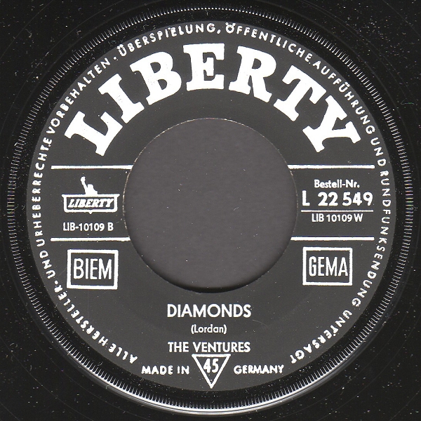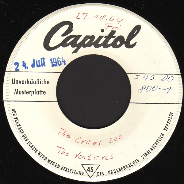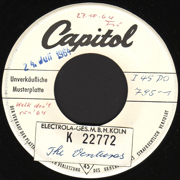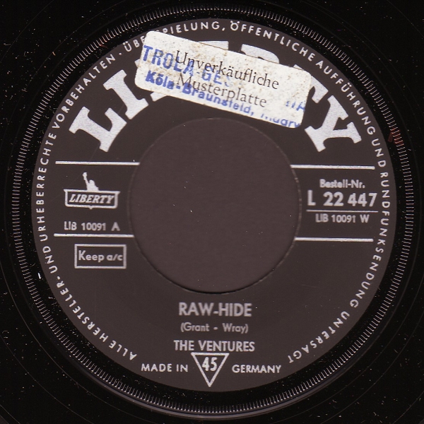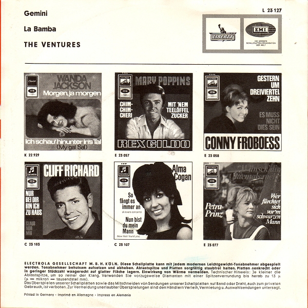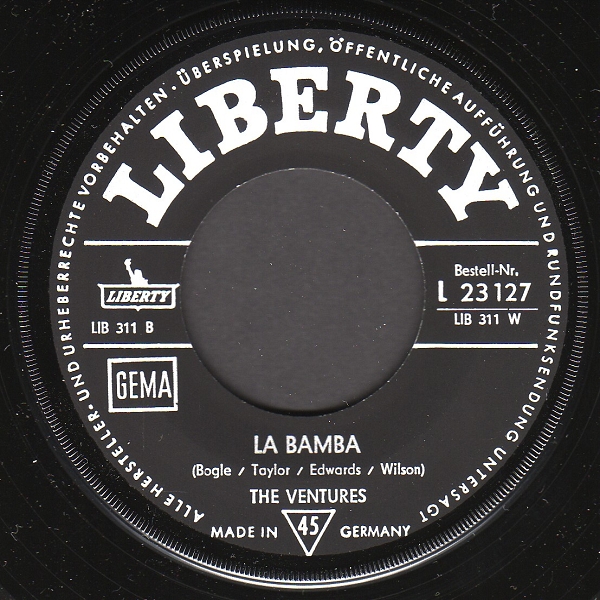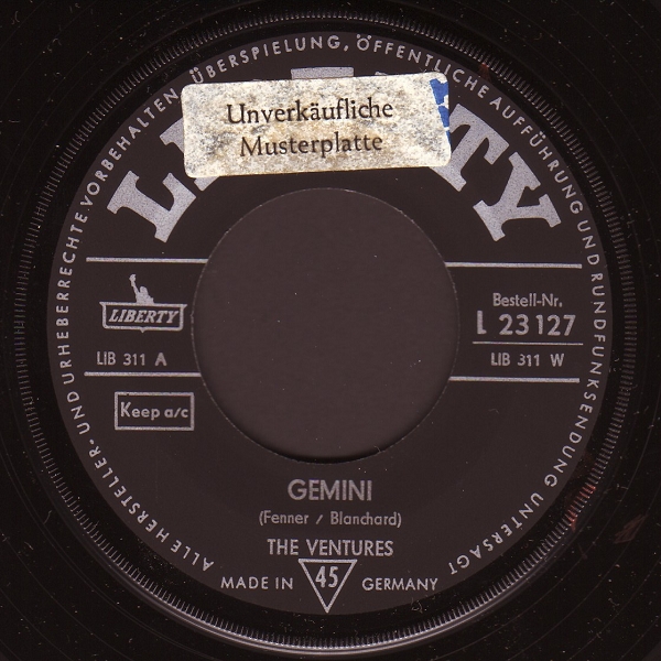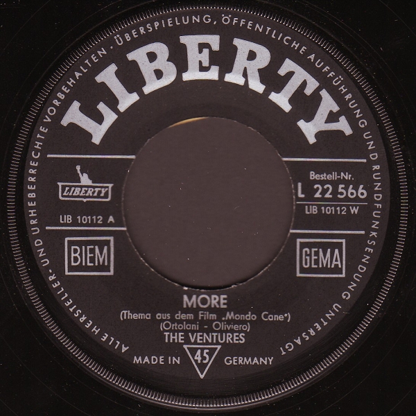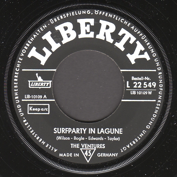 nun zeige ich die Ventures Single auf deutscher EMI Liberty. Die erste Single besitze ich (noch) nicht, deshalb habe ich sie noch einmal aus Gerd's Beitrag wegen der chronologischen Reihenfolge "ausgeliehen".