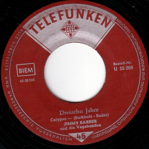 01 61....U 55 288....JIMMY BARBER und die Vagabunden..Dreizehn Jahre/Rastlos (Stenka Rasin)
