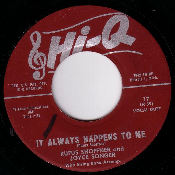 06 61....17....RUFUS SHOFFNER and JOYCE SONGER Arranged and supervised by DEVORA BROWN..Every Little Teardrop (H 58 )/RUFUS SHOFFNER and JOYCE SONGER With String Band Accomp. ..It Always Happens To Me (H 59)