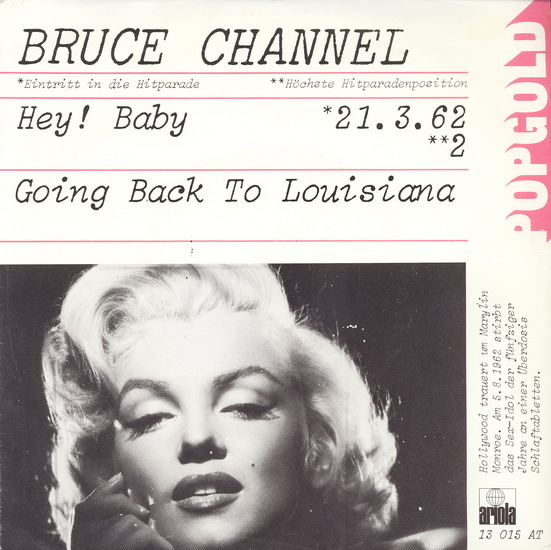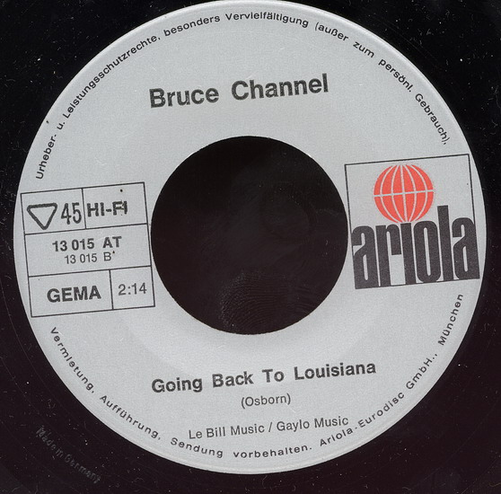 Einen Wermuthstropfen gibt es leider auch für mich in dieser Causa, nämlich, dass gerade ein Österreicher diese schöne Nummer mit dem herrlichen Harmonikaspiel total verarscht hat. Dabei gönne ich DJ Ötzi den großen Erfolg und er soll ja, wie ich hörte, ein netter Bursche sein; ich kenne ihn nicht persönlich. Ich nehme ihm auch gerne ab, dass er den Leuten nur Freude machen will. Aber musikalisch tut das schon weh, wenn so ein Gesangstück auf U! A! reduziert wird. Genug der Jammerei. Hier noch die 45 RPM Single-Diskografie von Bruce Channel bis nach 1963: