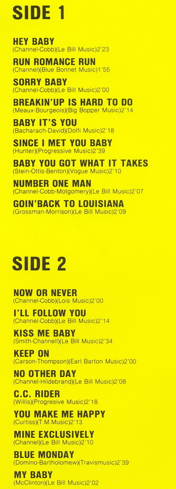 Bruce Channel wurde am 28. November 1940 in Jacksonville, Texas, als Bruce McMeans geboren. Er kam eigentlich von der Country-Musik wo er auch viel mit dem Mundharmonika-Virtuosen Delbert McClinton zusammenarbeitete. Sein vorerst einziger großer Erfolg war "Hey Baby", dass er bereits 1959 mit Margaret Cobb geschrieben hat. Als Single wurde dieser Titel, wo man auch das Mundharmonika-Spiel von Delbert McClinton hören kanne, erst im Jänner 1962 veröffentlicht. Ein Comeback hatte er nach der Flaute in den späten Sechzigerjahren insbesondere in Europa. In dieser Zeit war ich noch nicht auf Rocknroll spezialisiert und meine Lieblingssendung im Fernsehen war der Bremer Beat Club und Bruce Channel's "Keep On" ist heute nach wie vor eine meiner Lieblingsnummer aus dieser Zeit.