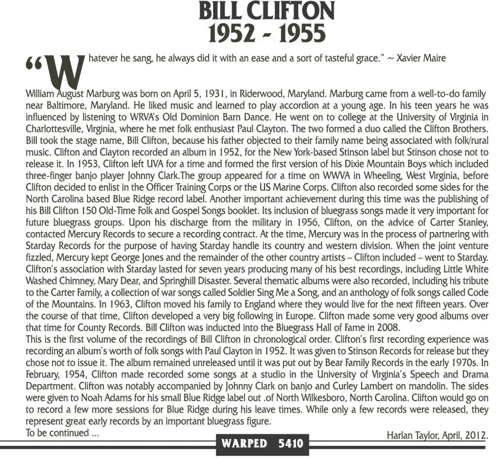 B1: Walkin' In My Steps (Clifton) - Bill Clifton und The Dixie Mountain Boys