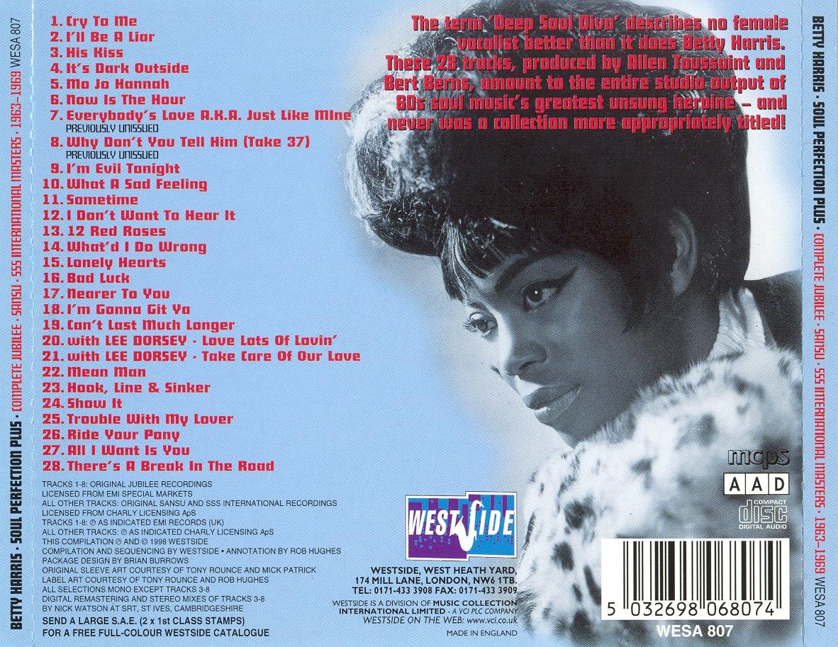 With her career at an impasse, Harris abruptly retired from performing in 1970. From there her legend grew, and rumors spread that she served as James Carr's road manager and even drove a tractor-trailer to make ends meet. In reality, Harris simply focused on raising her family, and while she shunned the music industry she continued singing in her church choir — after settling in Hartford, CT, in 1997, she even began offering vocal lessons. Still, Harris remained oblivious to the growing awe afforded her '60s output by soul aficionados, respect generated largely by the U.K. release of the Soul Perfection Plus retrospective.