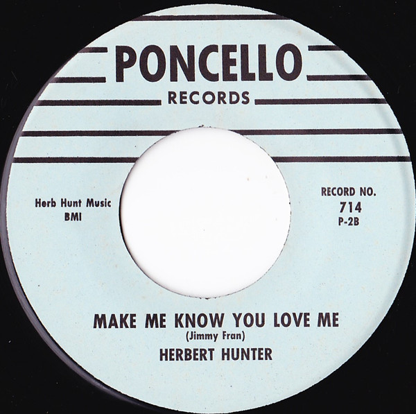 Von Herber Hunter gibt es zwar einige Bilder, aber das ist schon das einzig "Private", was ich von ihm herausbekommen konnte. Ich halte ihn daher für eine Kunstfigur der diversen Budget-Labels aus Nashville, Tennessee, die alle aus einem Stall kamen oder zumindest äußerst eng zusammenarbeiteten, wo er den lebenden Beweis gibt. Selbst das im Jahre 1960 von Ted Jarrett gegründete Label PONCELLO - man sagt, dass er damit R & B nach Nashville holte - war irgendwie mit den Budget-Labels verbandelt. Schon KENILWORTH begann damit, gerade aktuelle Titel zu covern, wofür es genug Interpreten zur Verfügung hatte, um diese Titel "soundalike" einzuspielen und sie um einen geringeren Preis auf den Markt zu bringen, was dann mit GIANT fortgesetzt wurde. Alan Bubis und William Beasley bauten dieses "Budget-System" mit der Gründung des SPAR-Labels im Jahre 1961 aus und mit der Gründung von HIT im Jahre 1962 durch William Beasley war das Budget-Label-Imperium offenbar komplett.