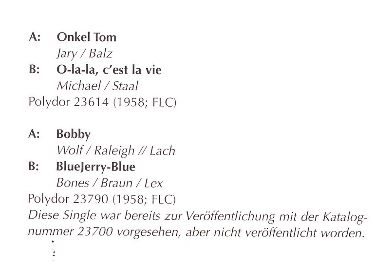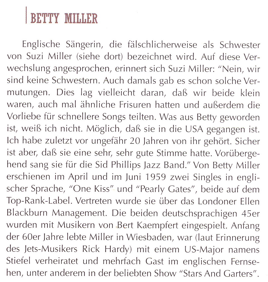 MILLER, BETTY, englische Sängerin, Sid Phillips Jazz Band, 1959 Top Rank, 1958 deutsche Titel für Polydor (23614 "O-La-La, C’est La Vie"/"Onkel Tom", 23790 "Bobby"/"Blue, Jerry, Blue"& Tanz-Ensemble BERT KÄMPFERT)