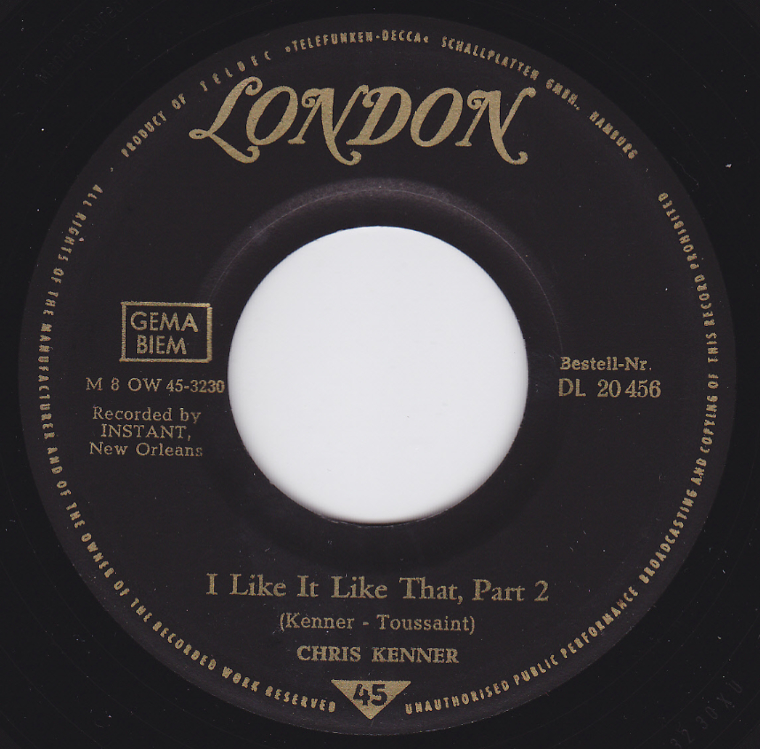 Chris Kenner (1929 - 1976) war ein Rhythm & Blues Musiker aus Louisiana. Seine ersten Plattenaufnahmen machte er 1955 für "Baton Records". In 1957 schrieb er "Sick and tired" und nahm den Titel auf Imperial auf. Fats Domino hatte mit seiner Coverversion mehr Erfolg. Auch für Ron-Records machte Chris Kenner Aufnahmen. Erfolgreicher wurde er aber erst ab 1961 durch seine Zusammenarbeit mit Allen Toussant. Seine bekanntesten Kracher erschienen auf dem Instant-Label (gehörte zu Atlantic-Records). "I like it like that", "Land of 1000 Dances" und "Something you got". All diese Kenner-Kompositionen wurden vielfach gecovert.