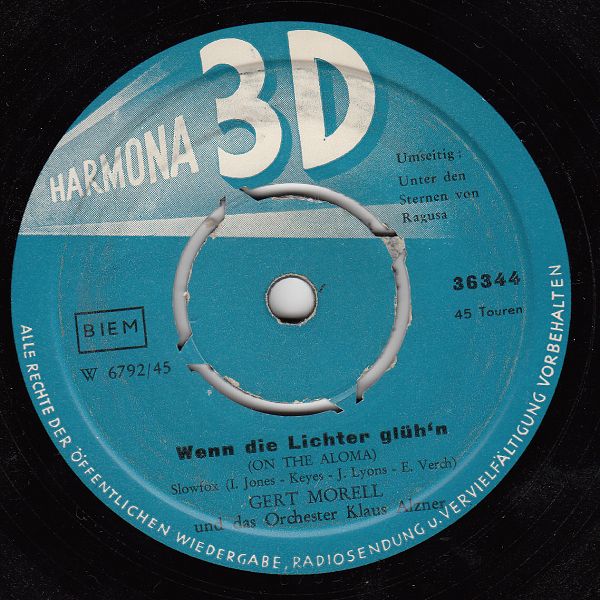 09 56....36344....GERT MORELL Orchester Klaus Alzner..Wenn die Lichter glüh'n On The Alamo/Unter den Sternen von Ragusa