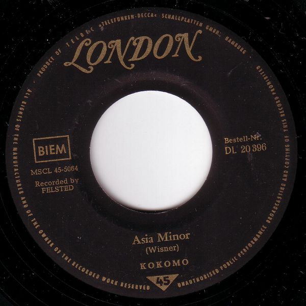 Unsere Bubenpartie in den Fünfzigern und frühen Sechzigern stand auch sehr auf Instrumentals und genauso wie bei den Vokalisten lockten uns ausgefallene Namen, besonders wenn sie nur einmal auftauchen, an. Einer dieser Instrumentals war "Asia Minor" von einem gewissen Kokomo, von dem es sogar zwei LONDON-Singles bei uns gab. Dieser Kokomo fehlt noch im Forum und ganz besonders wegen dem Super-Hammer "Asia Minor" muß das sofort geändert werden.