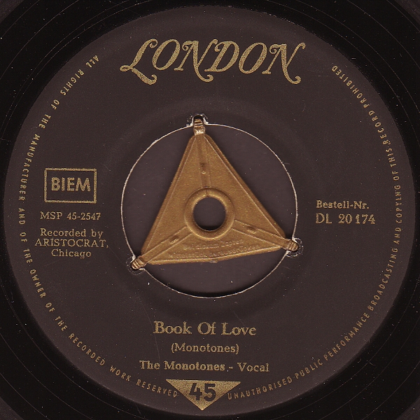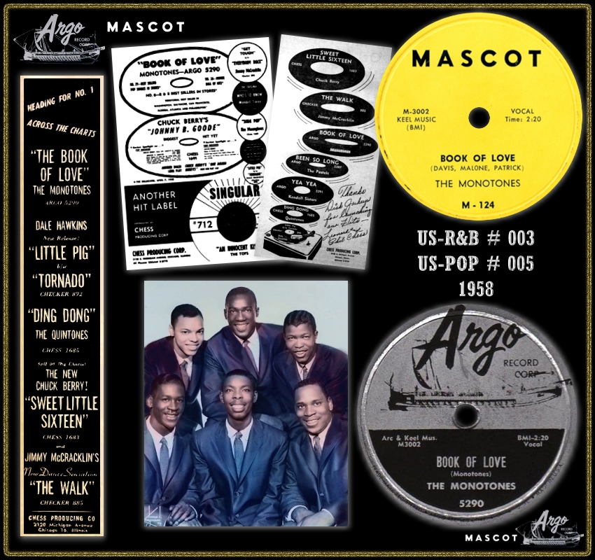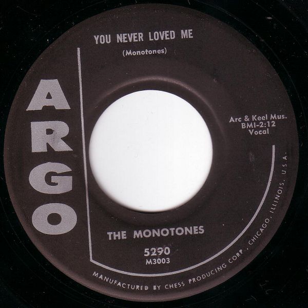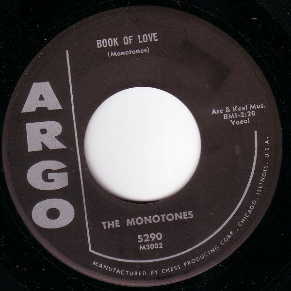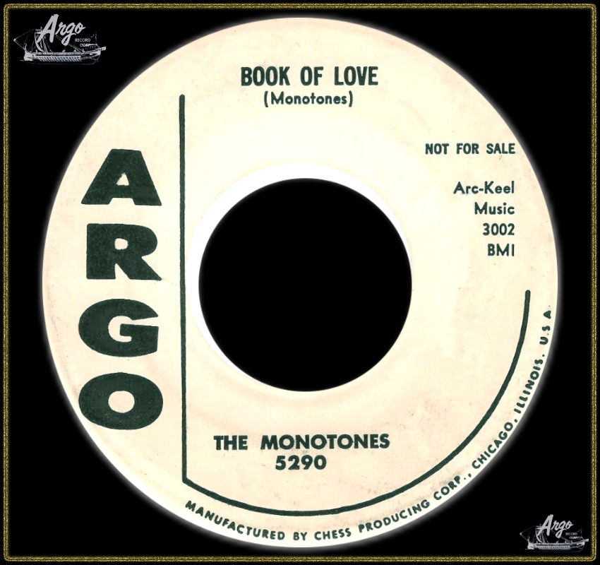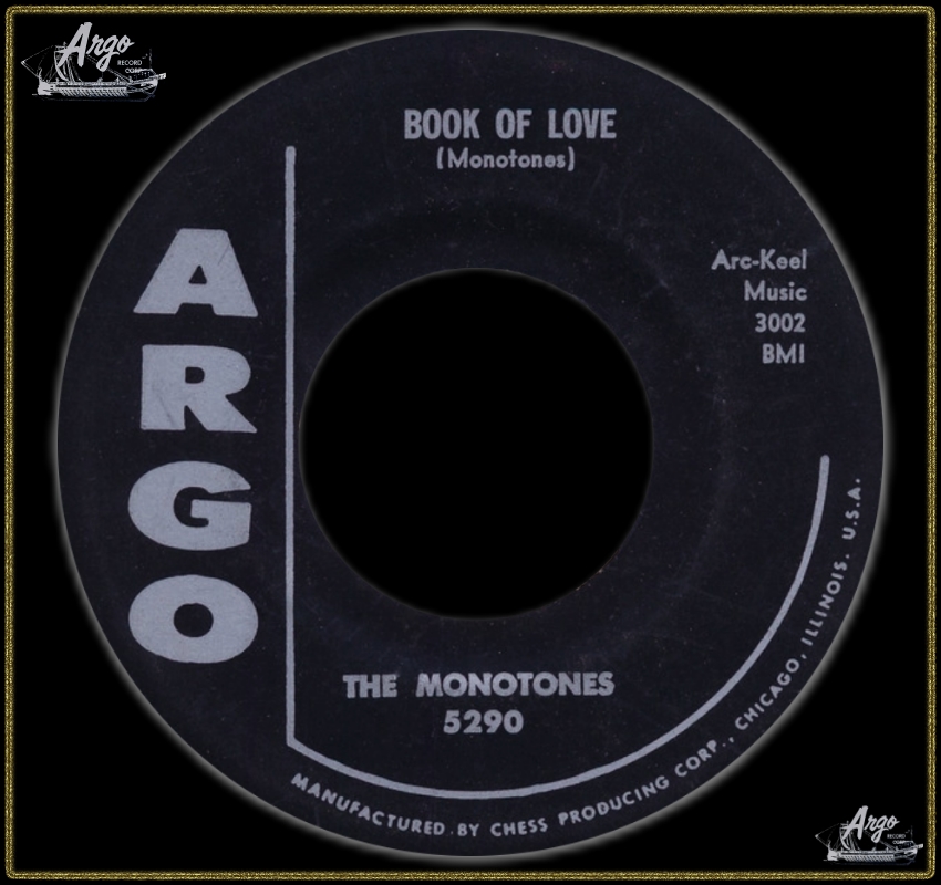 12 57....45-M-124....THE MONOTONES..Book Of Love/ (M 3002)You Never Loved Me (----------) (dann ARGO 5290)