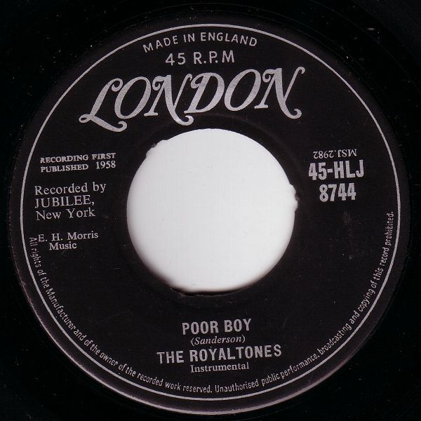 01 59....DL 20 211....THE ROYALTONES Instrumental..Poor Boy/Wail' (JUBILEE 5338)