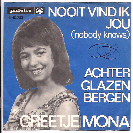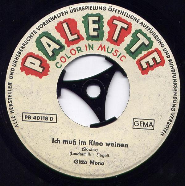 MONA, GITTA, Sängerin, 1962 Palette (40118 "Ich Muß Im Kino Weinen"/"Ich Wünsch Dir Einen Schlaflosen Abend", 40147 "James"/"Ich Kann Nicht Schlafen"), teilweise auf der Grundlage von John D. Loudermilk-Originalen