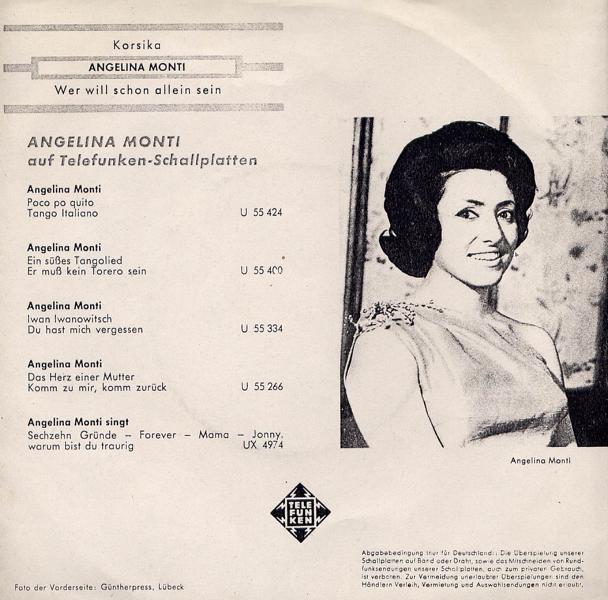 MONTI, ANGELINA (verh. NEUMANN) * 22.08.1936 in Rimini, italienische Sängerin,