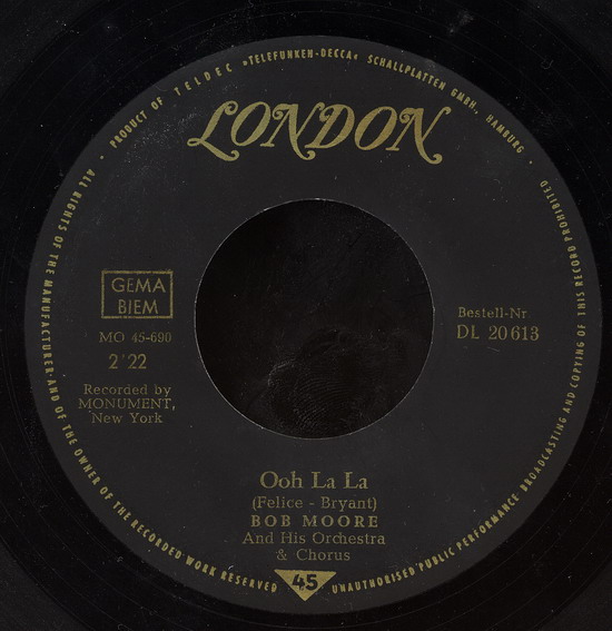 1959, nachdem er als Bandleader bereits mehrfach für das gerade aufstrebende Monument-Label gearbeitet hatte, kaufte Moore sich dort selber anteilmässig ein. Die erste bekannte Scheibe unter Moore's Mitregie bei Monument wird Billy Grammer's "Gotta Travel On", es folgen die populären Velvets und später dreizehn Nummer Eins-Hits des verstorbenen Roy Orbison für dieses Label.