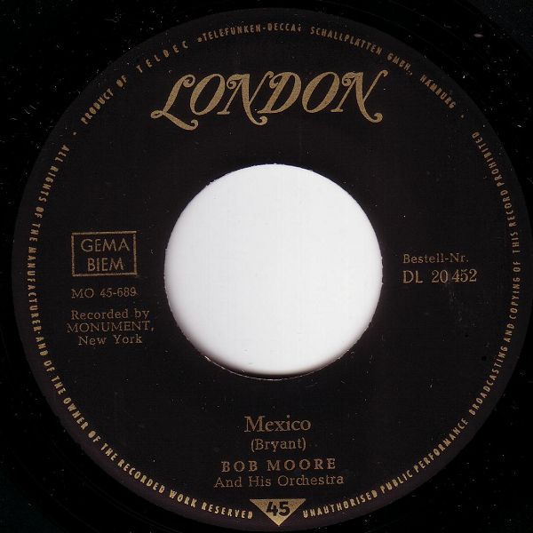 Die Idee für den "Mexico"-Titel begann bereits 1951 zu keimen, als Bob Moore zusammen mit Red Foley das Land gerade bereist hatte. "Eines Abends hatten wir dort eine tolle Band gesehen. Sie spielten mit acht Blechbläsern (Trompetern) und sechs Gitarristen; keiner stimmte 100%ig - und dennoch lieferten sie einen Wahnsinnssound. Irgendwie brachte mich das auf eine Idee, auch wenn ich zu diesem Zeitpunkt noch keine präzise Vorstellung im Kopf hatte ... dieser Mexiko Sound faszinierte mich irgendwie. Kurze Zeit später stellte mir Boudleaux Bryant am Telefon eine seiner neuesten Ideen vor - er sang mir das Lied am Hörer vor - und ich wusste sofort: das ist es. Im Studio probierten wir das dann aus, natürlich mit dem mexikanisehen Sound, den ich noch fasziniert im Ohr hatte – samt leicht verstimmter Trompeten. Wir konnten Bill McElhiney als ausgezeichneten Arrangeur gewinnen, und es klappte ... Wäre ich nicht selbst Anteilseigner bei Monument gewesen - kein anderes Label hätte dem Song auch nur eine Chance gegeben." Moore erinnert sich weiter "Gleich nachdem die Platte geschnitten war, verliess ich Nashville für einige Tage Urlaub westwärts. Ich war kaum bis Beaumont, Texas gekommen, da hörte ich unseren Titel bereits unterwegs im Autoradio. Etwas später, kurz vor Houston, sendeten sie den Mexico-Titel bereits drei- bis viermal stündlich ....“