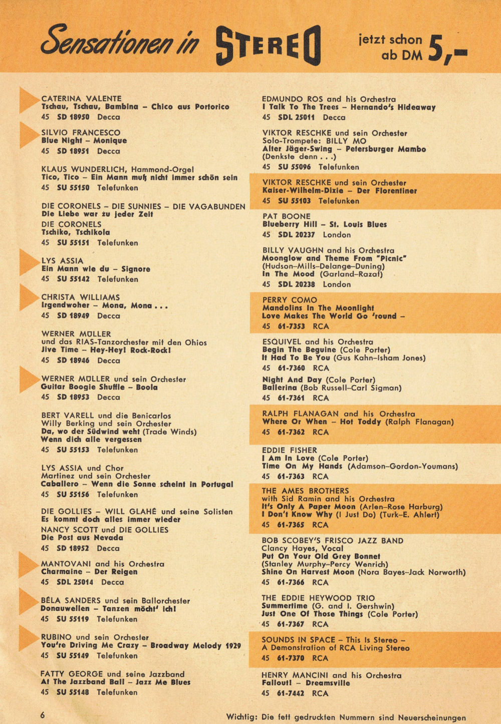Hier nun eine Aufstellung der derzeit mir bekannten von TELDEC angebotenen STEREO-Singles: