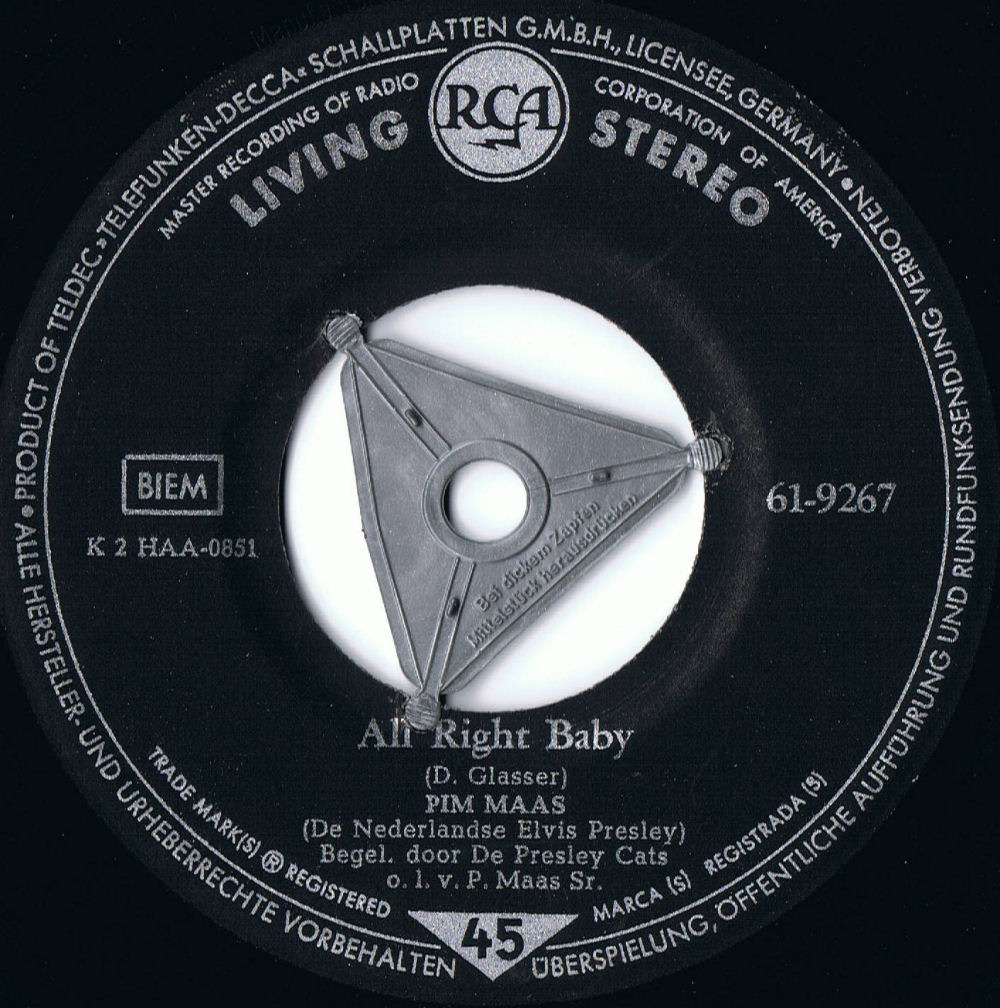 10 59....61-9267....PIM MAAS (De Nederlandse Elvis Presley) - Begel. door De Presley Cats, o. l. v. P. Maas Sr. ..Kansas City/All Night Baby (NL: RCA 9267)