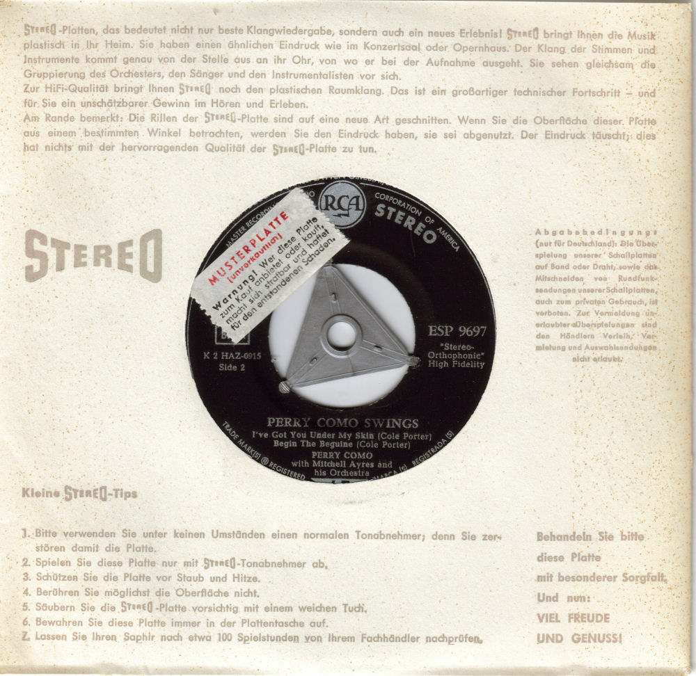 Die Idee zu diesem Thema kam mir durch einen Beitrag von big-bopper, der eine deutsche Stereo-Single von Perry Como zeigte, worauf Jans die gleiche Single, aber mit einem anderen Logo vorstellte: