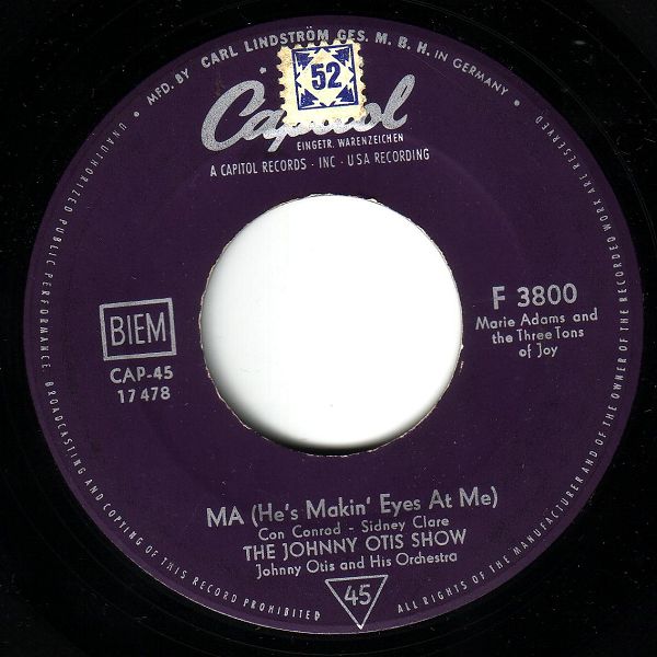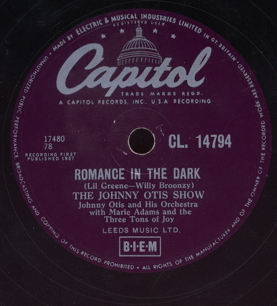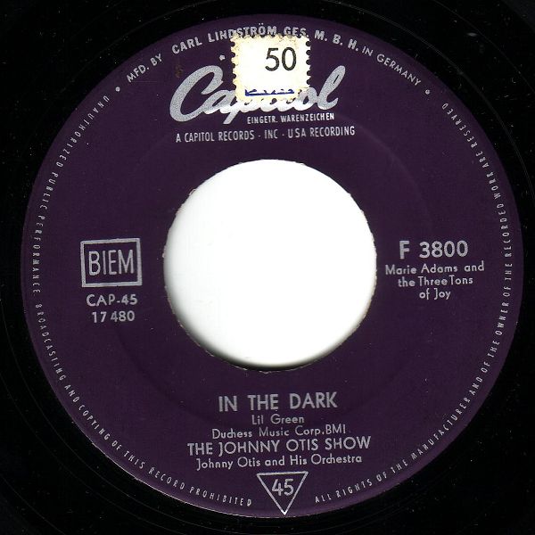 09 57....F3800....THE JOHNNY OTIS SHOW Mary Adams And The Three Tons Of Joy..In The Dark (45-17480)/Ma (He's Makin' Eyes At Me) (45-17478)