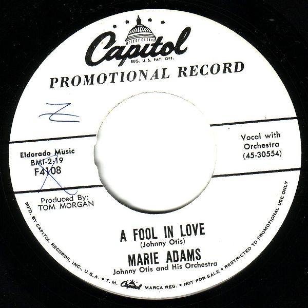 12 58....F4108....MARIE ADAMS Johnny Otis and His Orchestra..A Fool In Love (45-30554)/What Do You Want To Make Those Eyes At Me For? (45-30555)
