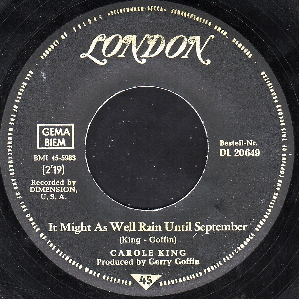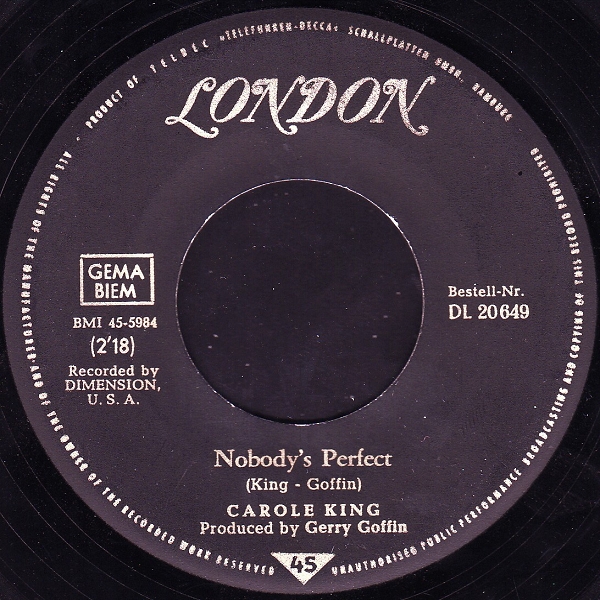 A1:It Might As Well Rain Until September (King - Goffin) B1:Nobody's Perfect (King - Goffin)