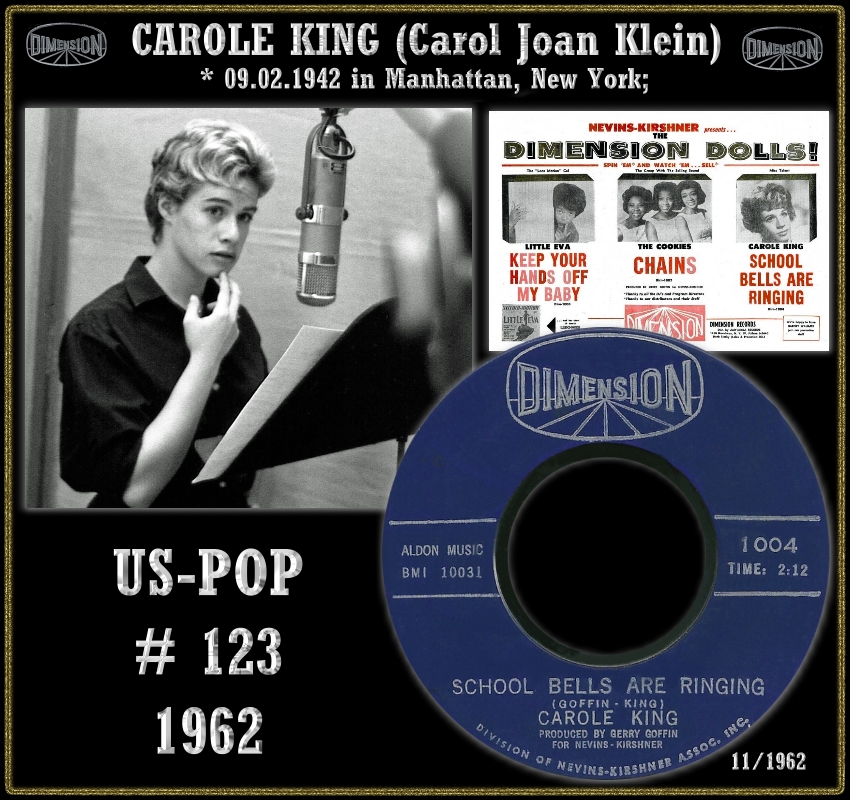 CALLIOPE 09 62....6505....KEESTONE FAMILY SINGERS..Cornbread And Chitling (EX12705)/Melodrama (EX12698) *) DIMENSION 11 62....1004....CAROLE KING..School Bells Are Ringing (BMI 10031)/I Didn't Have My Summer Romance (BMI 10032)
