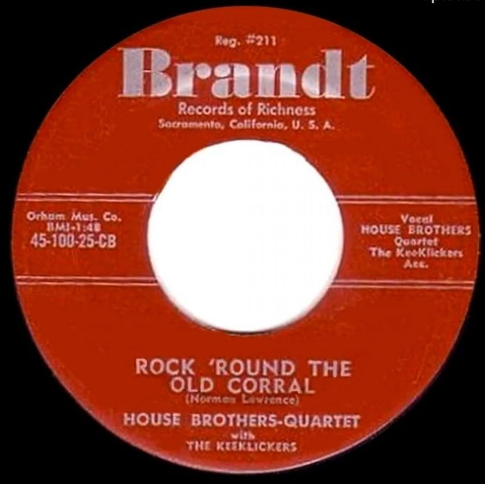 BRANDT ?? ??....45-100-25-CB (Reg. #211)....HOUSE BROTHERS QUARTET with THE KEEKLICKERS..Rock 'Round The Old Corral/45-100-26-CB….Blue Shadows On The Trail