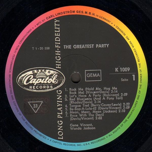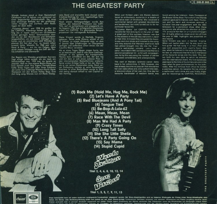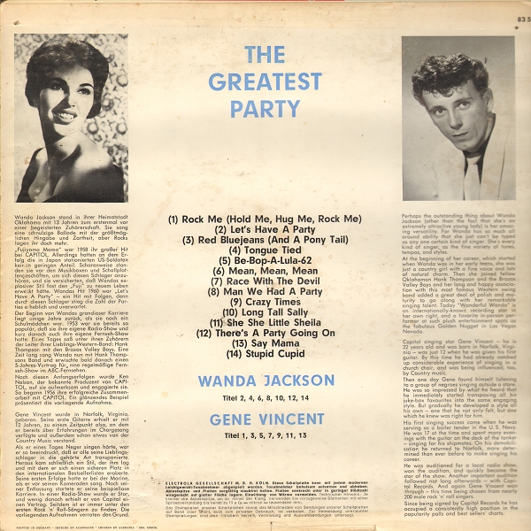 von Gene Vincent gab es 1963 in Deutschland eine halbe LP. Die andere Hälfte war Wanda Jackson gewidmet. Nun habe ich zu dieser Platte einige Fragen: