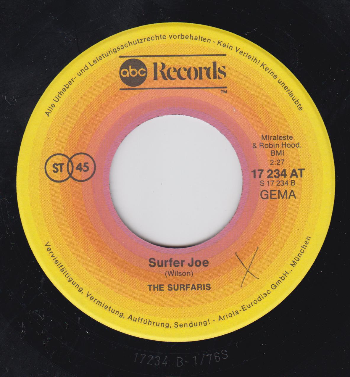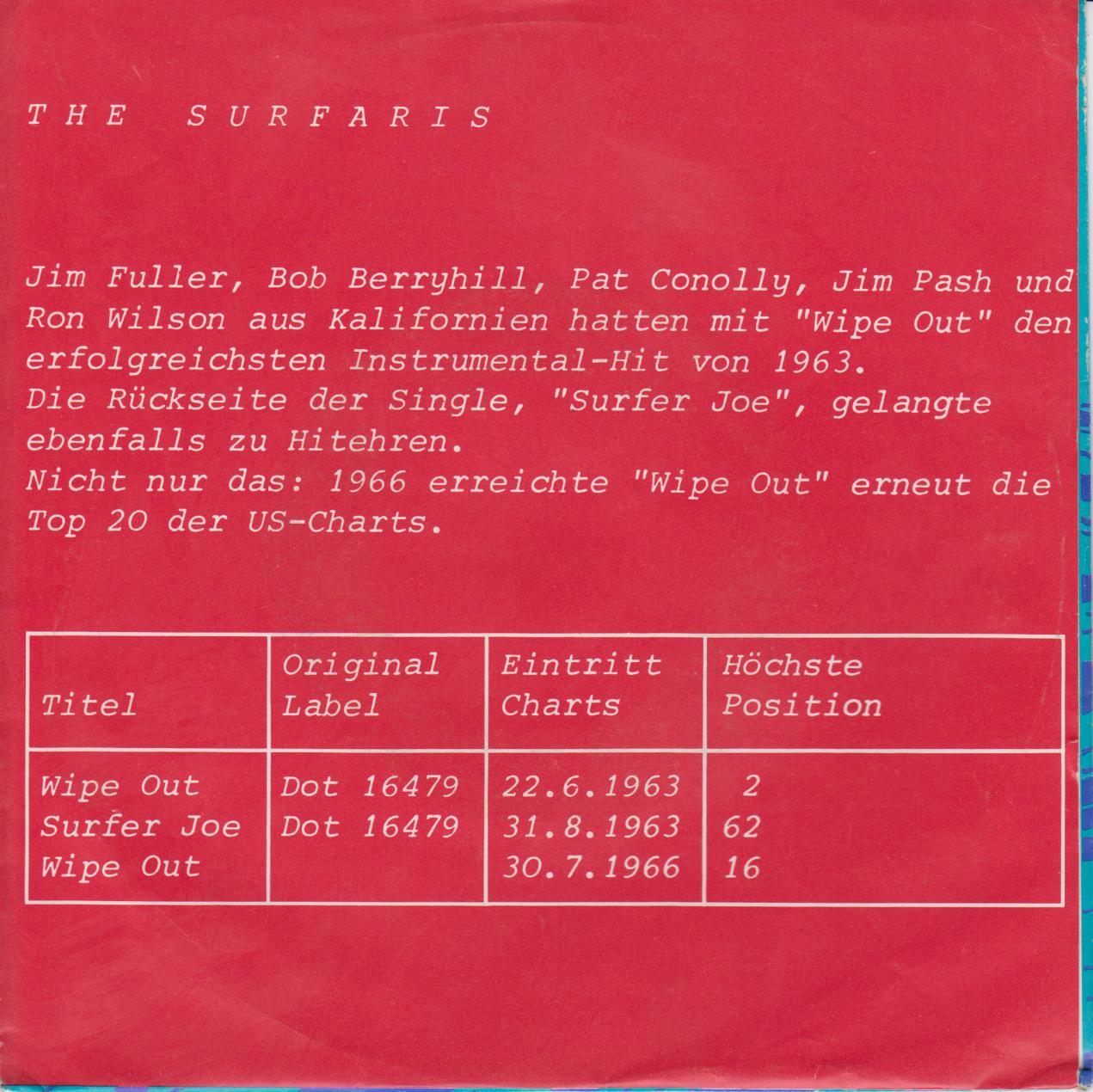 Richard Delvy, Schlagzeuger bei der Band The Challengers, bot den „Surfaris" an die Single über sein eigenes Label „Princess" zu vertreiben. Nachdem auch „Dot Records" die Single veröffentlichte ging der Weg bis zur Nummer 2 der Billboardcharts. Nach einigen Streitereien über die Veröffentlichungs- und Auftrittsrechte der Single mit „Dot Records" und weiterem Ärger mit der Band The Impacts, die Anspruch auf das Lied Wipe Out erhoben, mussten die „Surfaris" in einem Rechtsstreit mit einer gleichnamigen Band ihre Namensrechte verteidigen. Die „Surfaris" gewannen den Prozess und die andere Band spielte fortan unter dem Namen The Original Surfaris. Zu bemerken sei noch, dass bei der ersten 1963 erschienene LP "Wipe Out" nur die Titel Surfer Joe und Wipe Out von den Surfaris eingespielt wurden. Die restlichen Titele wurden von den Challengers gespielt. Das kam damals sicher aufgrund der Verbindung zu Richard Delvy zustande.
