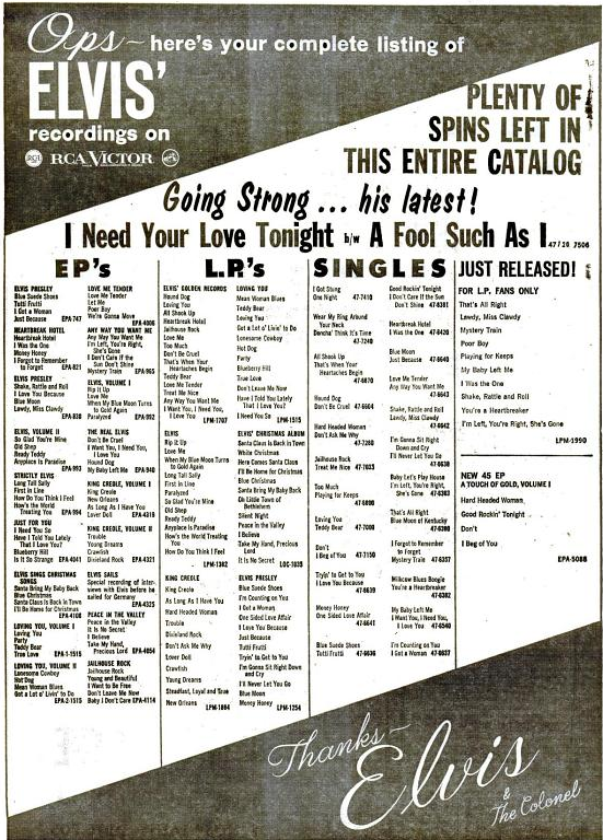 in Billboard wurde auch für Elvis Schallplatten geworben, leider nicht so oft wie ich dachte. Hier die Suchergebnisse.