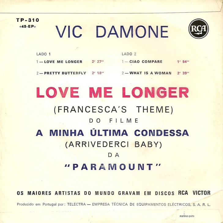 Frank Sinatra beschrieb Damones Balladenstimme als "die beste Ausstattung an Orgelpfeifen im Showbusiness". Mehr biografische Informationen findet man im deutschsprachigen WIKIPEDIA-Eintrag - look here: http://de.wikipedia.org/wiki/Vic_Damone
