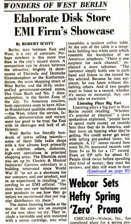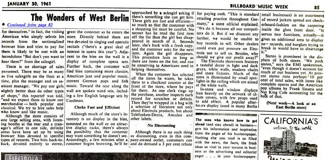 soeben in Billboard 1961-01-30 entdeckt. Ein Electrola Store in Berlin. Richtig schick. Wie lange gab es dieses Geschäft? Kurfürstendamm?