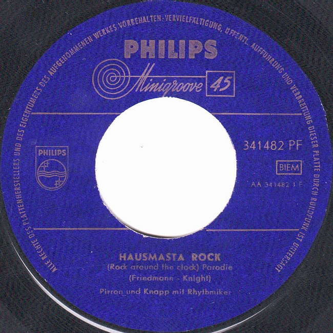An den Anfang stelle ich das Original von Sonny Dae & His Knights auf Arcade (1954) und meine Lieblingscoverversion in the (na fast) German Language - Pirron & Knapp mit ihrem "Hausmasta Rock".