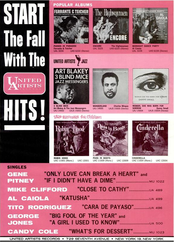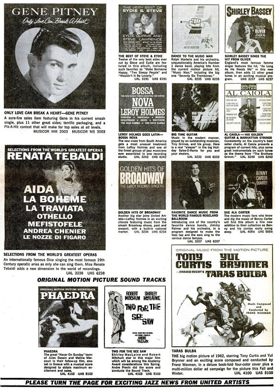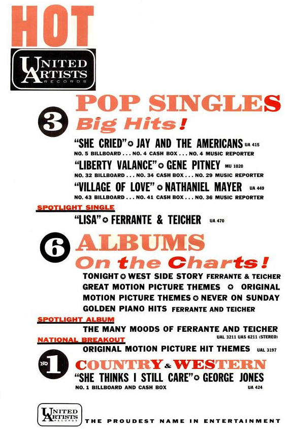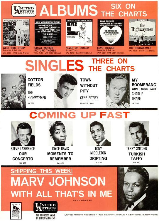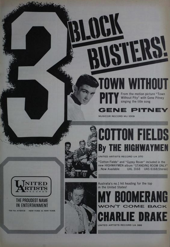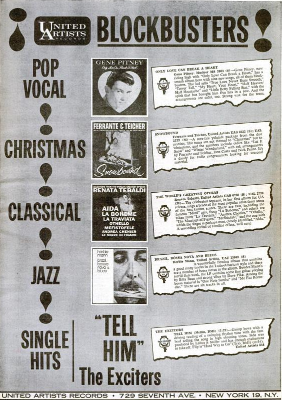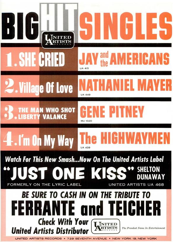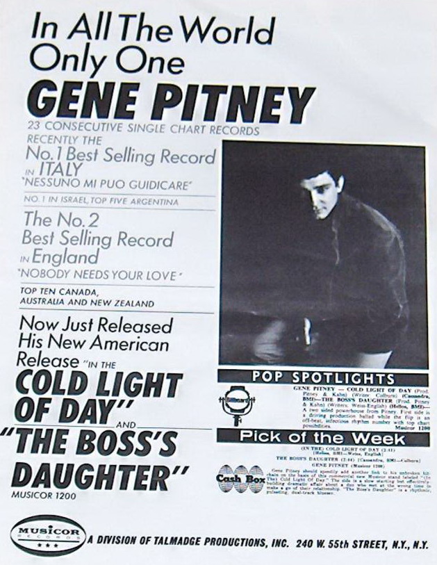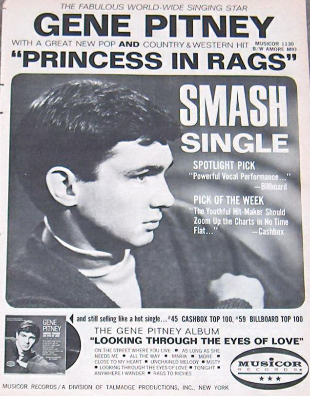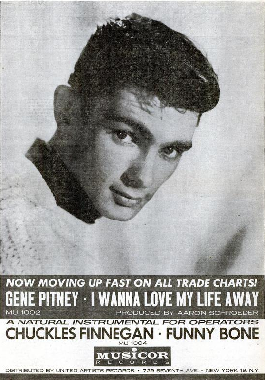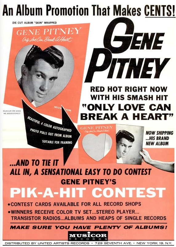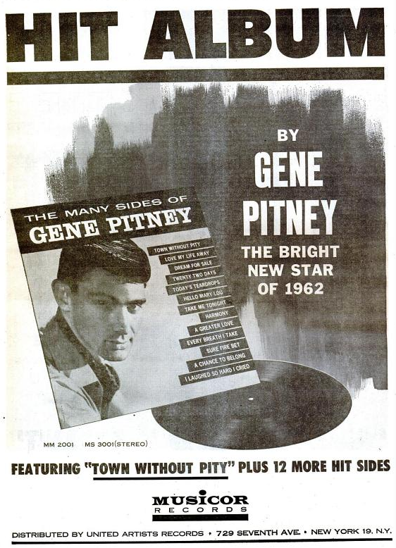 anfangs - kann man sagen - war das United Artists Unterlabel Musicor gleich bedeutend mit Gene Pitney. In der Billboard wurde er und das neue Label durch den Mutterkonzern mächtig gesponsert - siehe meine Suchergebnisse bis Mitte 1962.