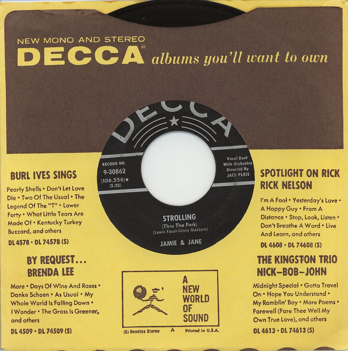 03 59....9-30862....JAMIE AND JANE (mit Ginny Arnell)..Snuggle Up Baby/Strollin' (Thru' The Park)