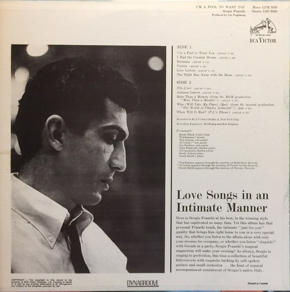 In Billboard wurden auch einige europäische Stars via Anzeige vorgestellt. Allerdings war der Erfolg nur von kurzer Dauer. Von Sergio Franchi weiß ich nichts - außer: er ist Italiener.