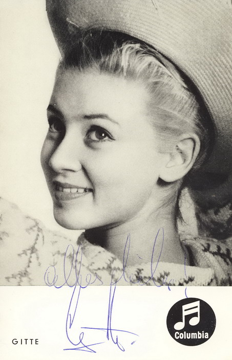 Hier noch ein richtiger Knaller aus Gittes frühester Gesangskarriere. Gitte Haenning auf einer dänischen HIs-Masters-Voice Schellackplatte. Auch in dänisch gesungen, so ca. 1956/57. Tja, wir hatten damals unsere Kleine Cornelia und die Dänen ihre kleine Gitte.