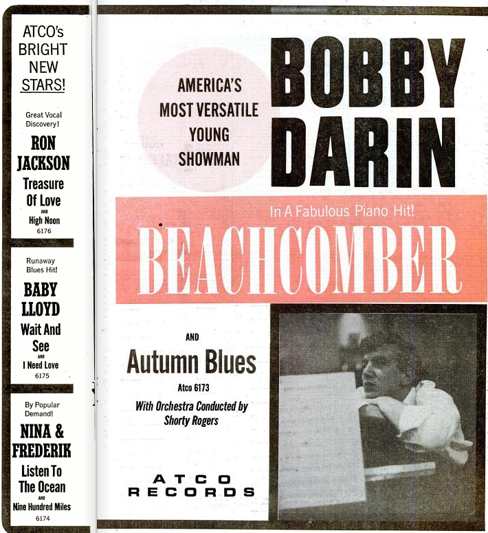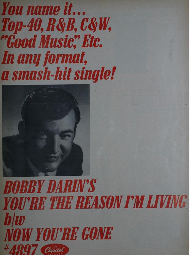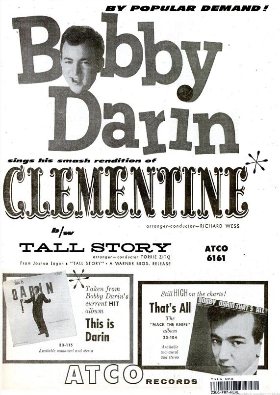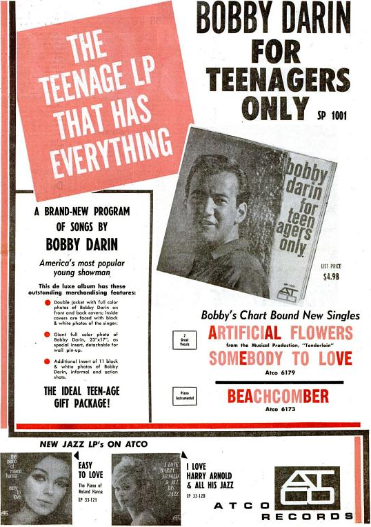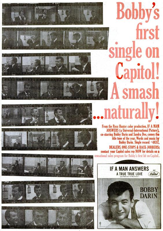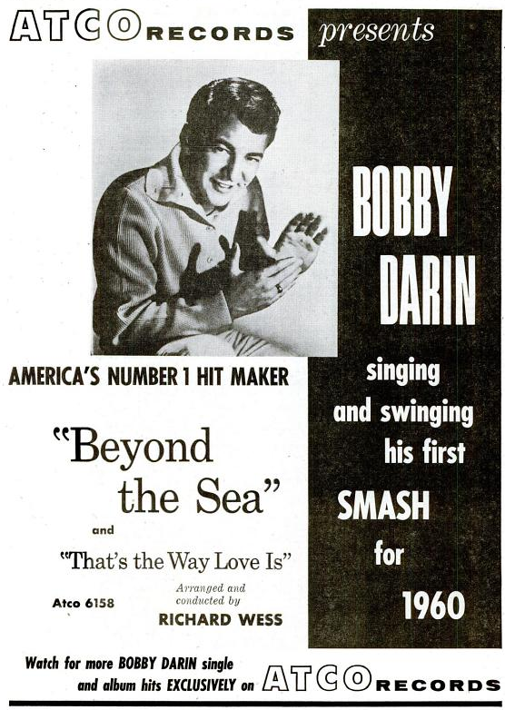 fast von keinem Künstler gab es so viele große Werbeanzeigen wie von Bobby Darin. Sowohl von ATCO als auch von Capitol.