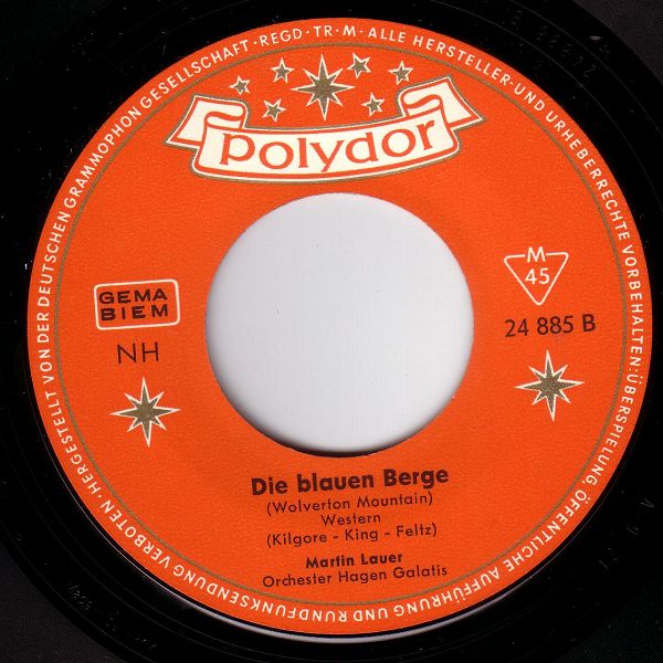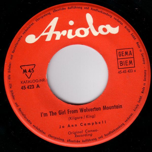 Hier Claude King mit seinem einzigen Top 10 Hit in den Pop-Charts und seinem einzigen Platz 1 in den Country-Charts (in den Counry-Charts hatte er mehrere Top 10 Hits). Anschließend daruf gleich die Antwort von Jo Ann Campbell. Im Unterschied zu "Are You Lonesome To-Night" hat man bei der deutschen Version von "Wolverton Mountain" keinen Wert auf die Möglichkeit eines Antwort-Songs gelegt. Mit den "Blauen Bergen" wäre das auch schwer gegangen