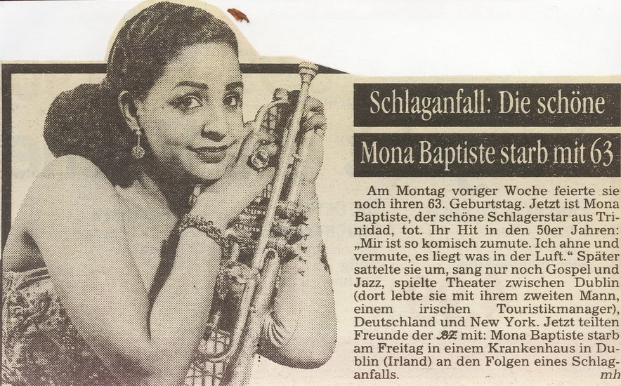 Mona Baptiste starb am 25 Juni 1993, vier Tage nach ihrem 65. Geburtstag in Krefeld.